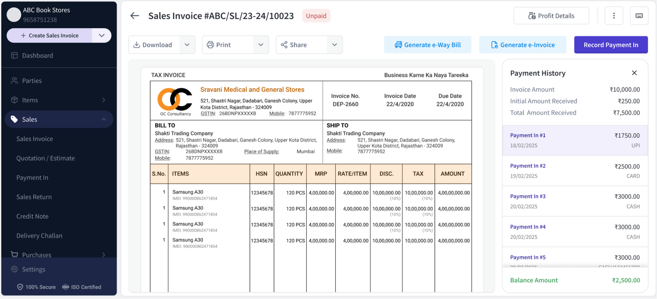 You can now view a detailed payment history—along with payment modes—right within the sales invoice preview. This update provides full visibility into how and when a customer paid for a particular invoice.