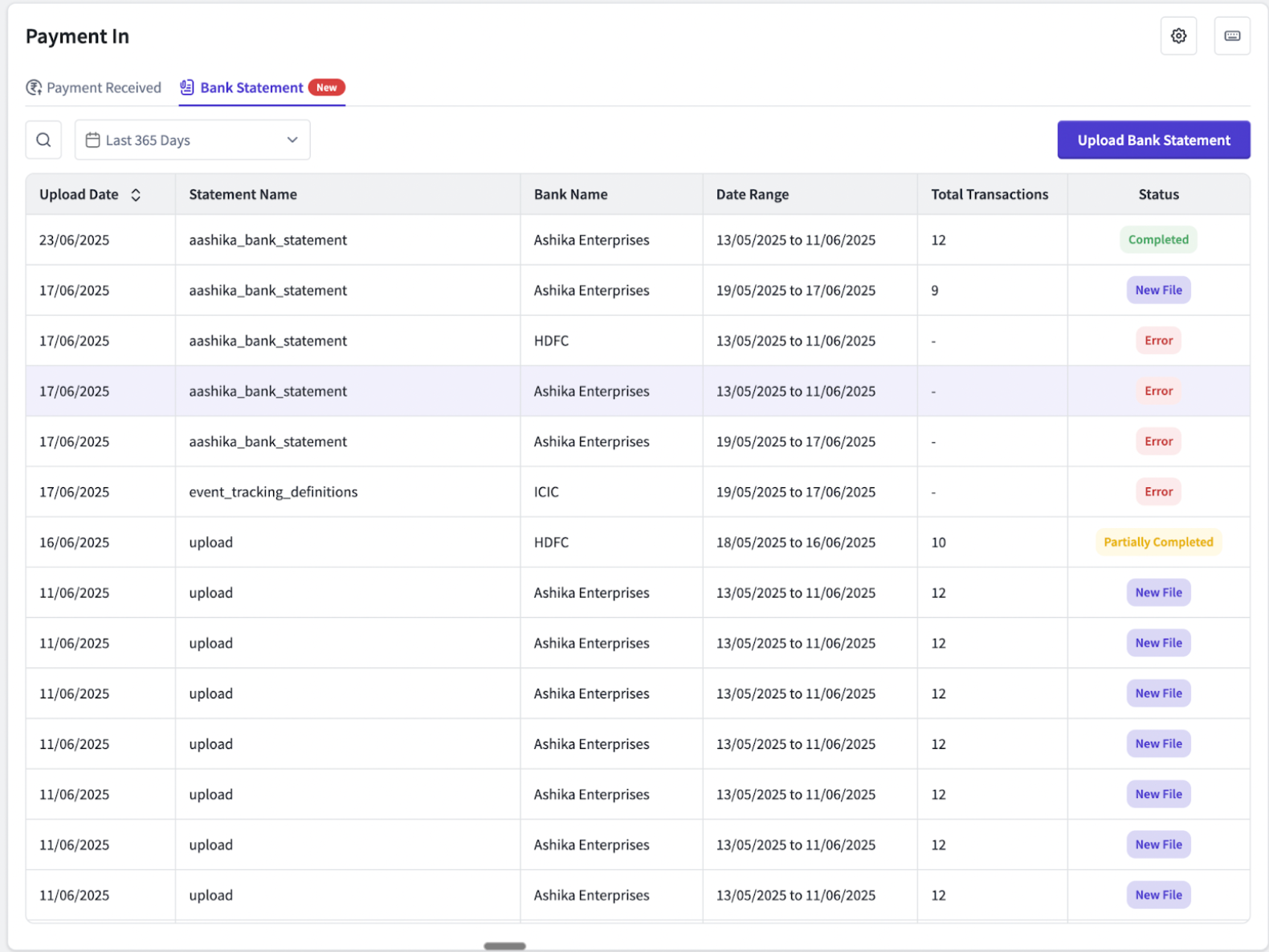Bank statement uploads under โPayment-Inโ